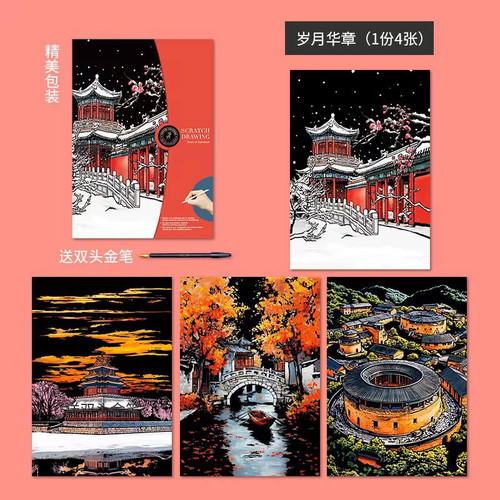 🏛️🎨 نقاشی خراشیدنی «تور شهرهای باستانی» سایزA3 مجموعه ۴ برگی اسکرچ بزرگسال 🎨🏛️