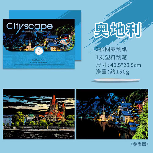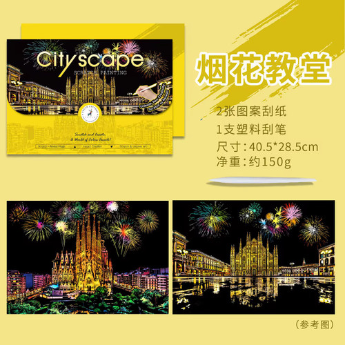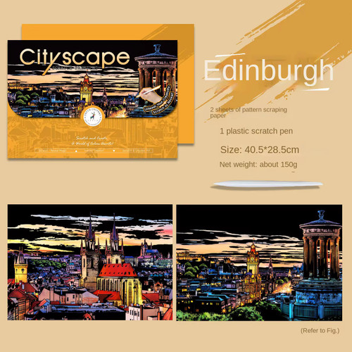 🏙️🎨 نقاشی خراشیدنی اسکرچ بزرگسال – طرح شهرهای مختلف جهان (مجموعه دو برگی) | کد ۴🎨🏙️