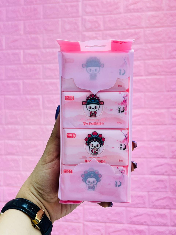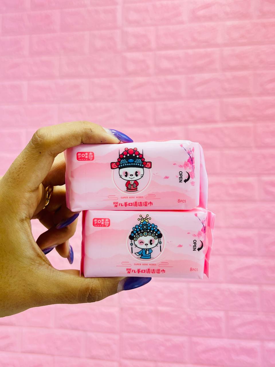 ✨🧴 دستمال مرطوب جیبی فانتزی صورتی✨🧴