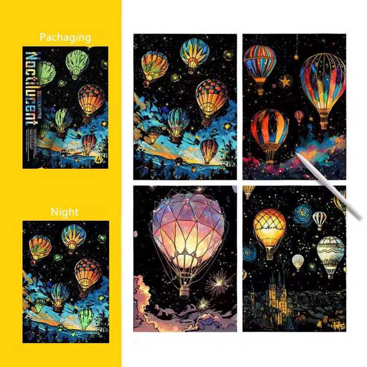 اسکرچ برد بزرگسال طرح بالن یک انتخاب آرامشبخش و جذاب برای علاقهمندان به هنر و سرگرمیهای خلاقانه است. این پک شامل ۴ عدد اسکرچ برد سایز A4 بوده و تمام طرحها شبتاب (Glow in the Dark) هستند؛ یعنی بعد از اتمام خراش، نقاشی شما در تاریکی میدرخشد و جلوهای فوقالعاده پیدا میکند.