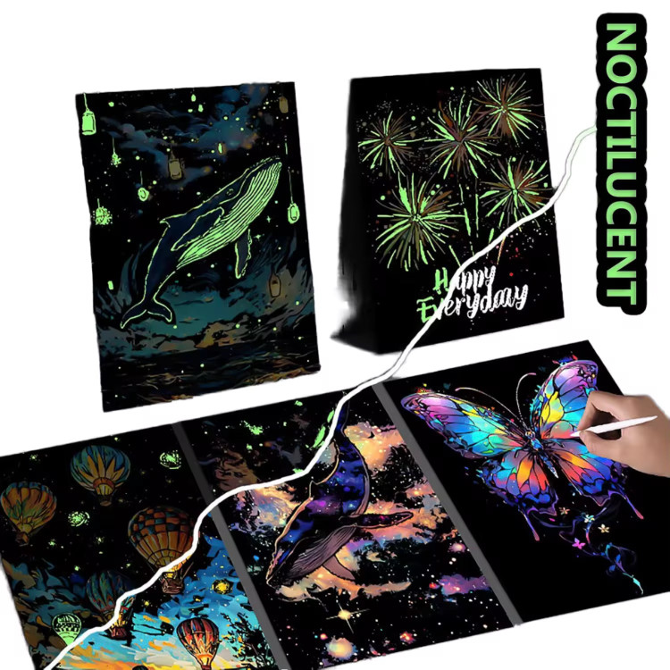 با استفاده از قلم مخصوص، فقط کافیست سطح مشکی را بهآرامی بتراشید تا خطوط رنگی و درخشان ظاهر شوند. این محصول یک فعالیت هنری عالی برای کاهش استرس، تمرکز ذهن، دکور اتاق و همچنین یک هدیه خلاقانه و خاص است.