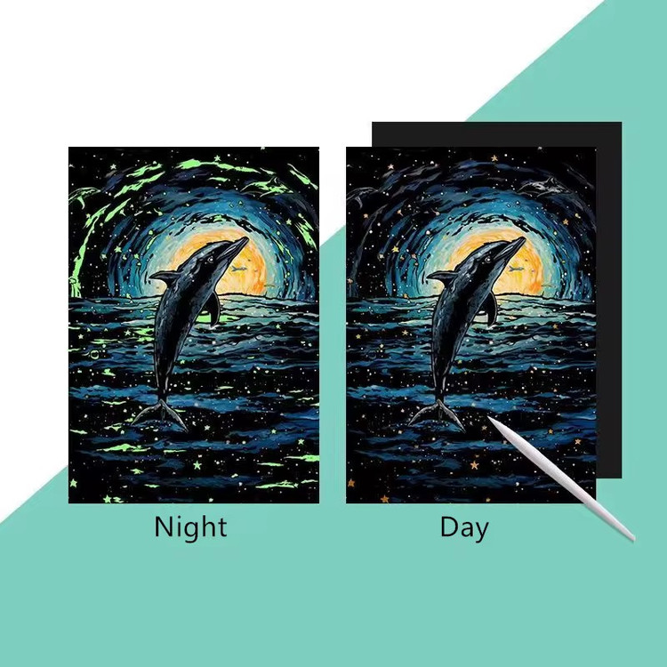 نقاشی خراشیدنی اسکرچ شبتاب نهنگ A4 بسته 4 برگی