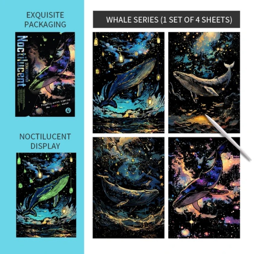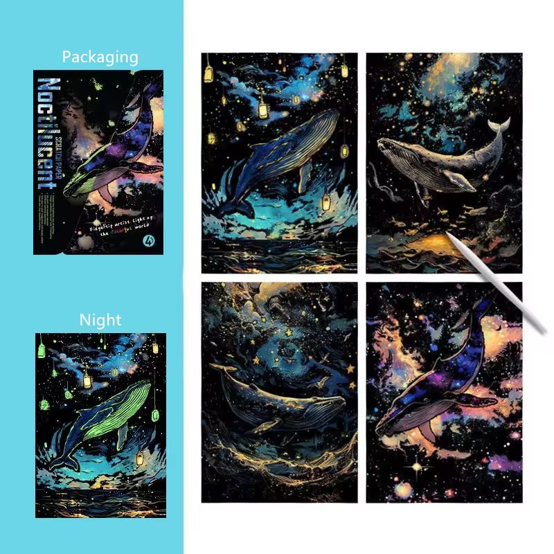 نقاشی خراشیدنی اسکرچ شبتاب نهنگ A4 بسته 4 برگی