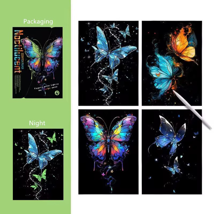 نقاشی خراشیدنی اسکرچ شبتاب پروانه A4 بسته 4 برگی