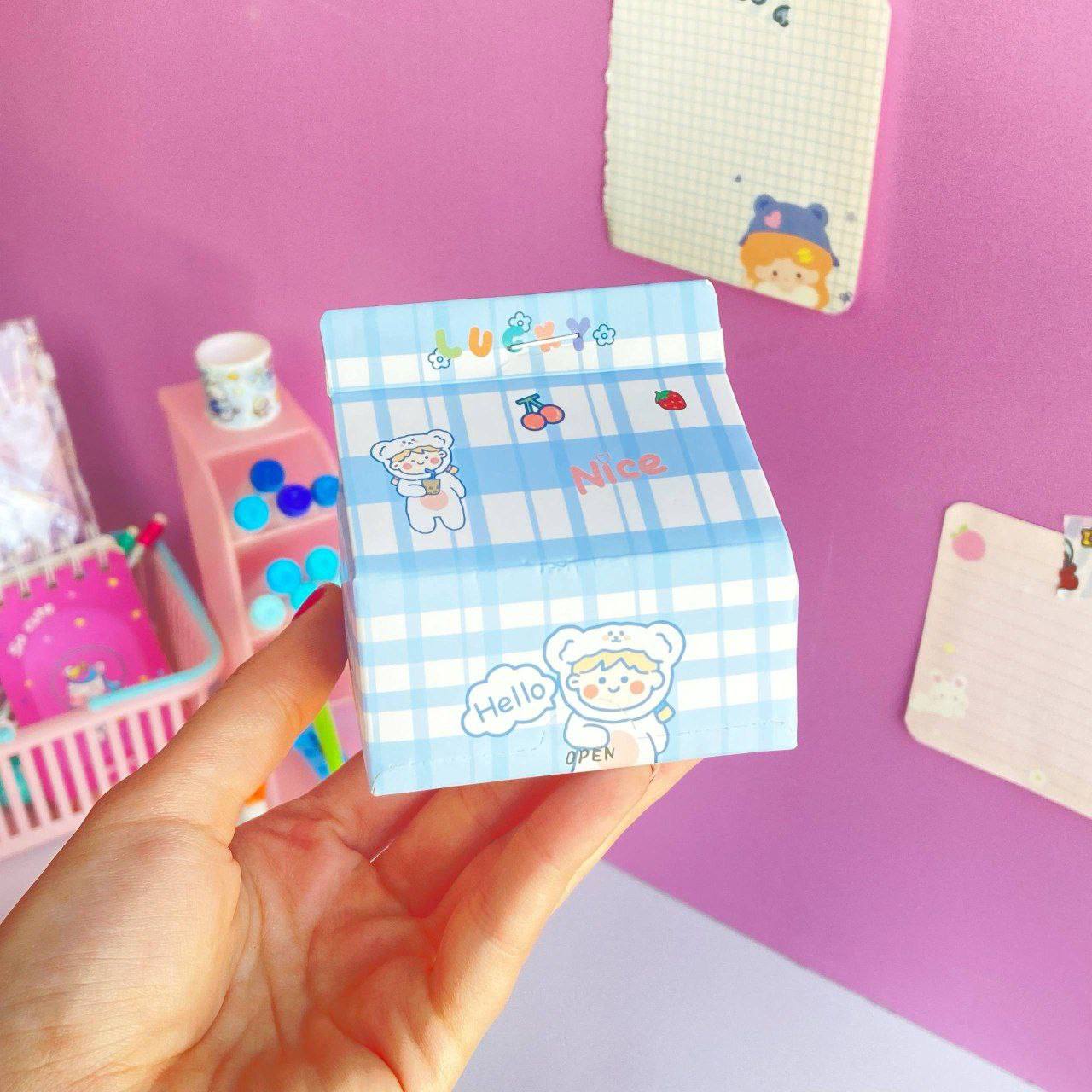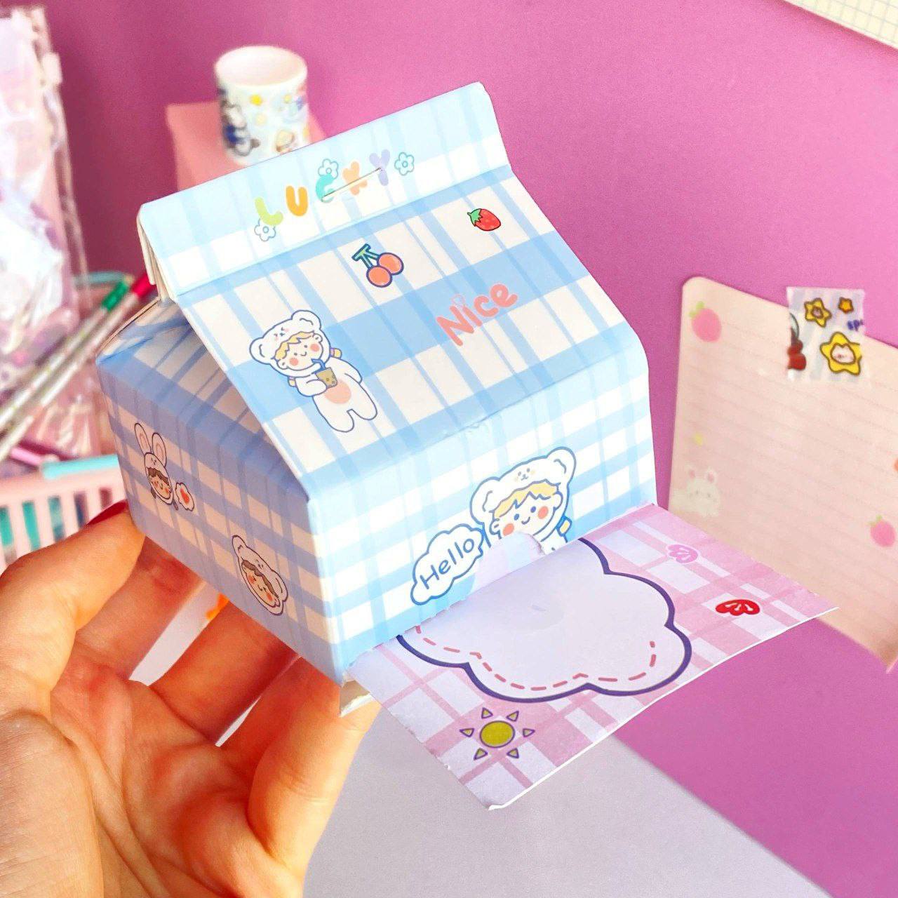 نوتپد ۲۰۰ برگی طرح پاکت شیر 💎برند موکا💎 طراحی خاص و فانتزی شبیه پاکت شیر 🩵 کیفیت بالا و کاغذ نرم و لطیف برای یادداشتهای روزمره ✨