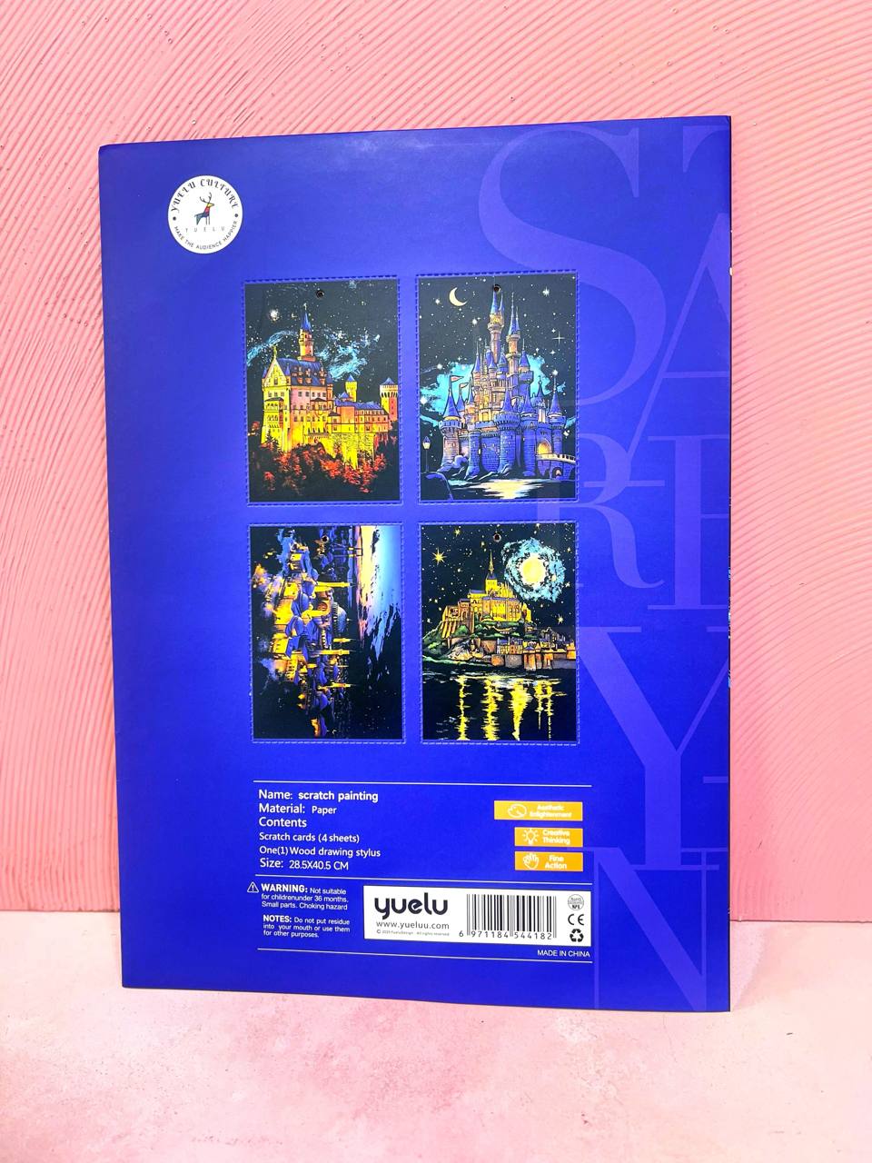 🌌🎨 اسکرچ بزرگسال نقاشی خراشیدنی «شب پُرستاره» سایزA3 مجموعه ۴ برگی 🎨🌌